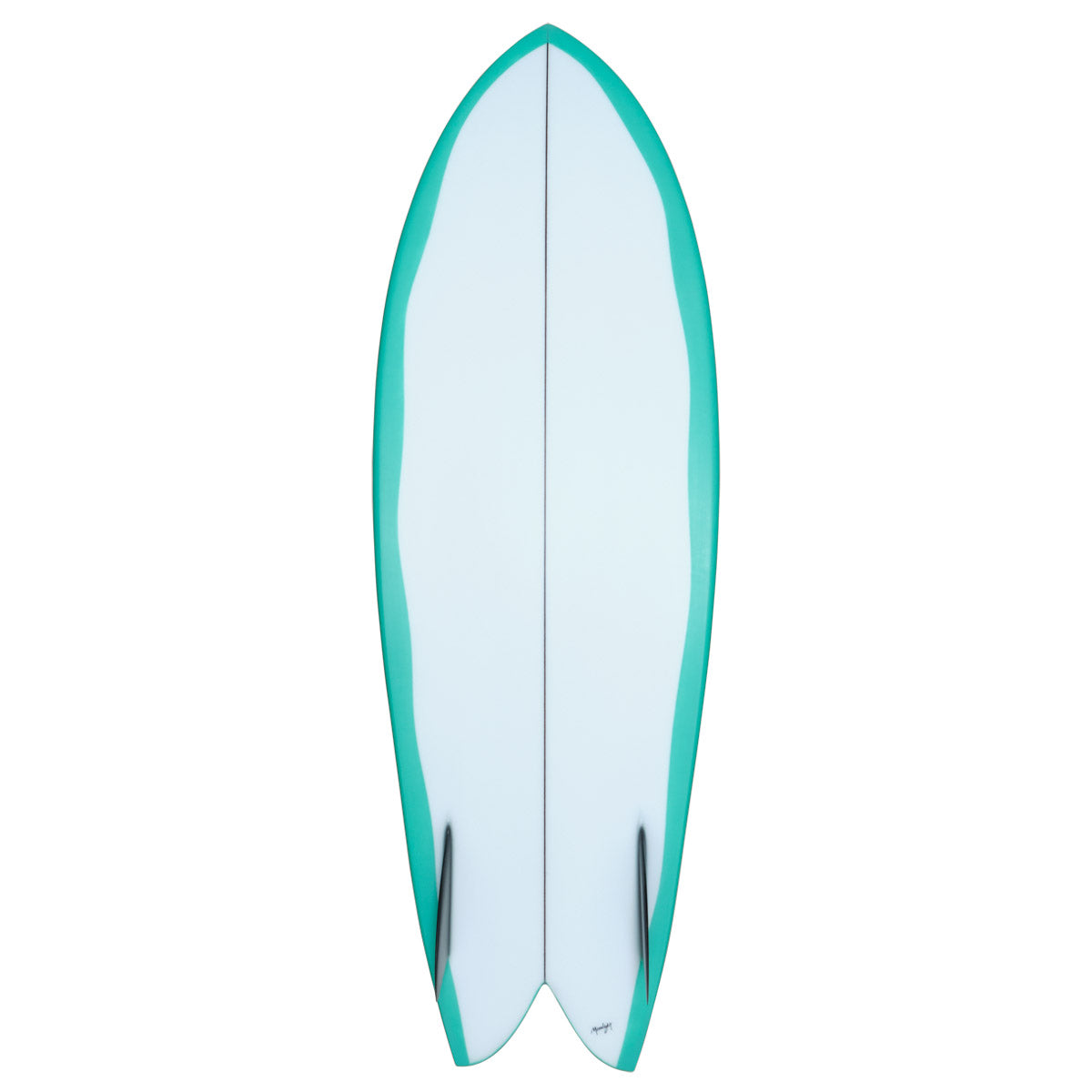 Same concept as the orange fish but with added side cuts to create quicker rail to rail transitions and release points for tighter turns. More compatible with modern performance surfing without breaking traditional dimensions.