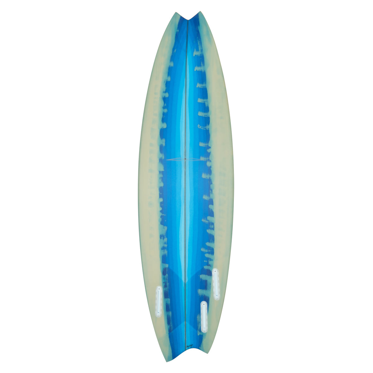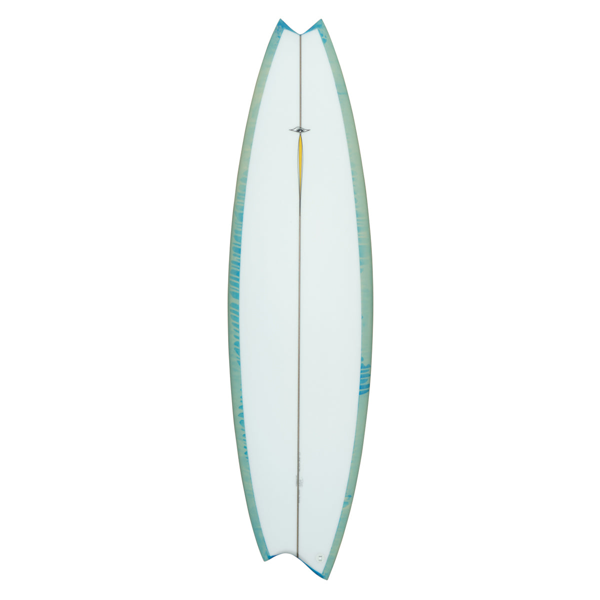 A swallow tail version of the pickle 1+2. It features the aggressive forked nose with inverted vee concave for channeling water while paddling and adding lift while riding. The tail shape is an asymmetric swallow tail like the pickle twin model with a slightly longer toe side and shorter curvier heel side. This is a very high performance board that excels in head high down the line surf, although dimensions can be adjusted to suit a large variety of waves.