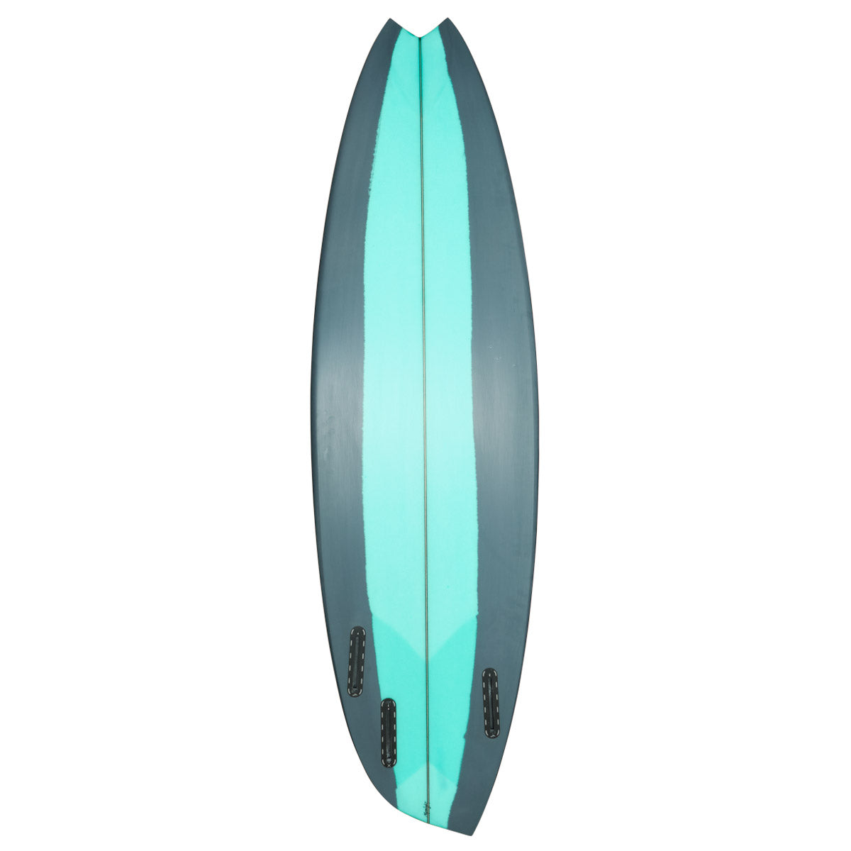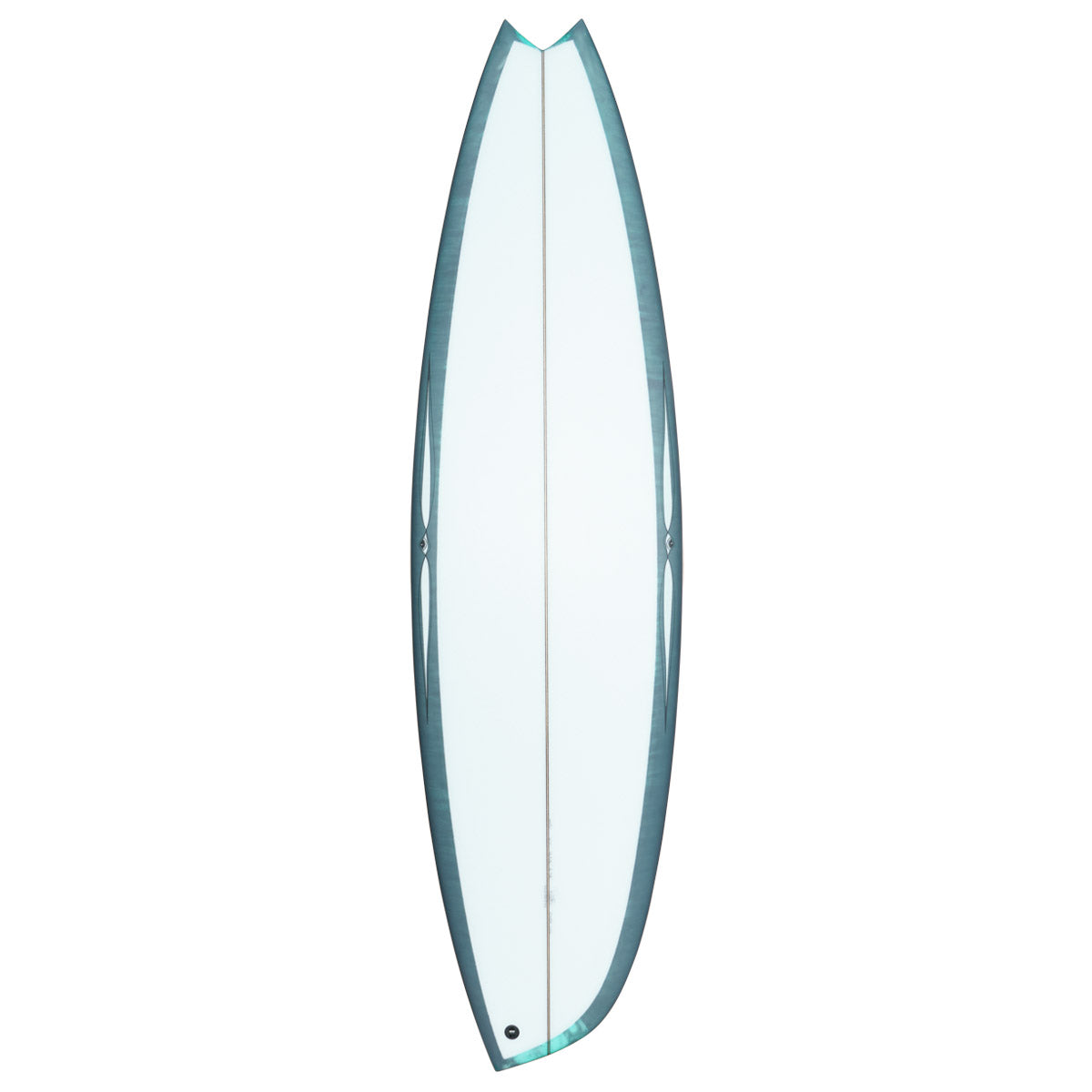A high-performance asymmetrical design much like the pickle fork twin but with slightly more radical asymmetry and a smoother release off the tail. Typically built with future removable fins, one on the toe side using my high aspect twin fin template and two of my cutaway quad fins on the heel side. The tail is great for tight in-the-pocket turns and the toe side rail provides drive and speed.