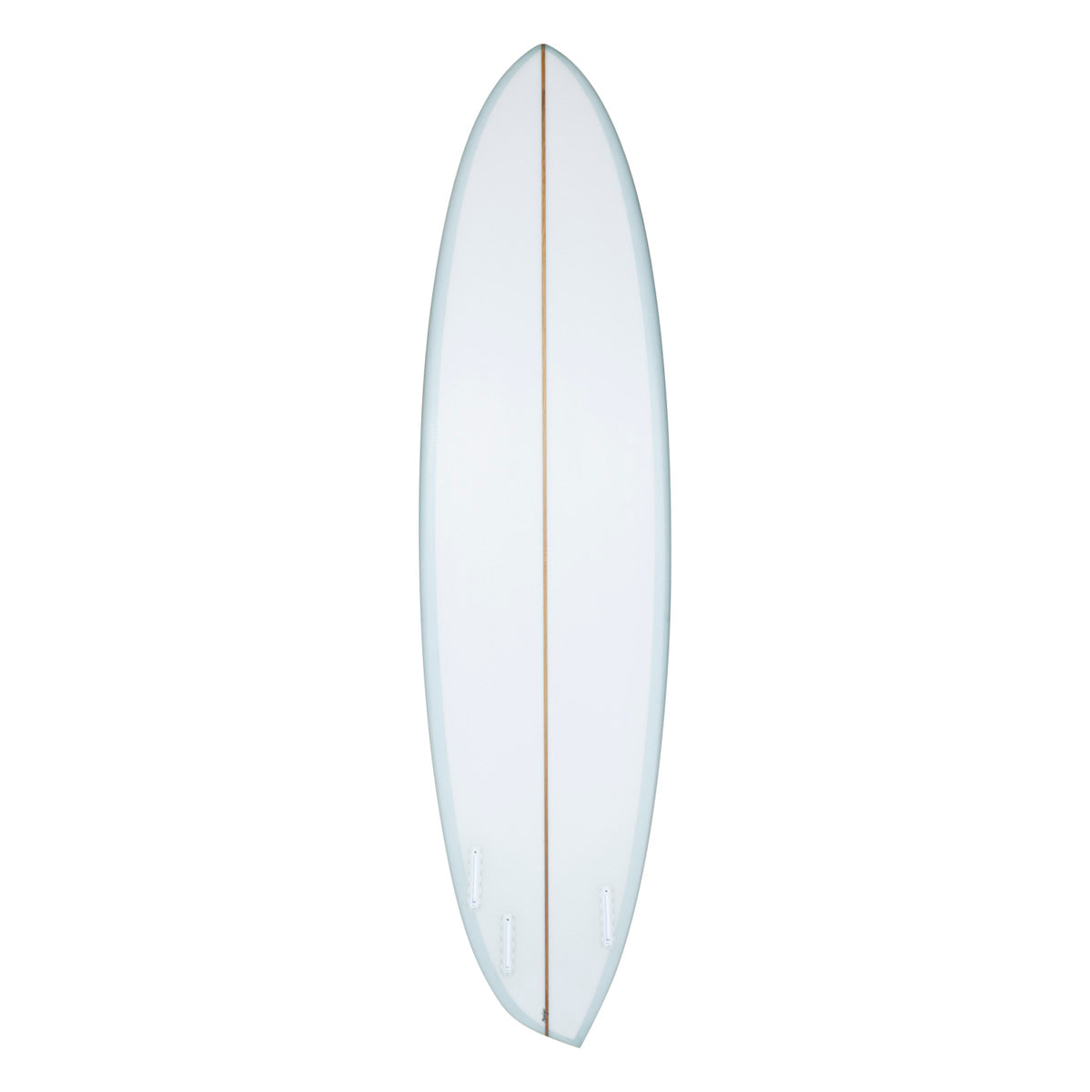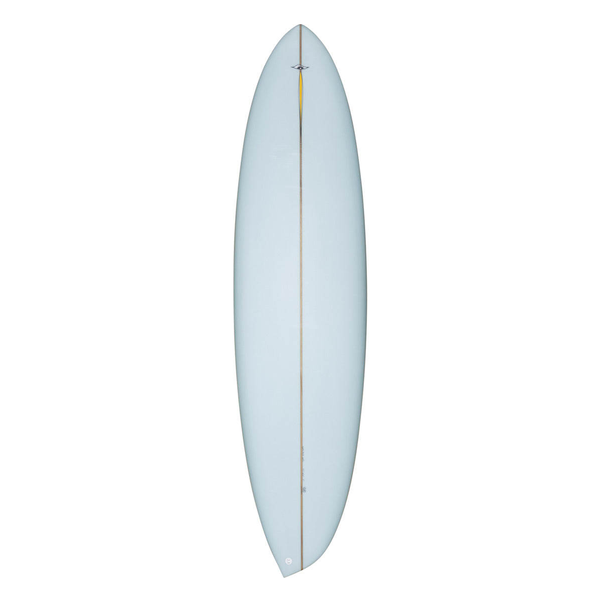 An asymmetrical mid length board with a fuller nose outline and curve throughout. The tail shape is rounded on the shorter heel side and curves to an off set point on the topside rail. Typically made with a bit of volume and a relaxed rocker for good paddling and stability. It can surf like a much shorter board with drive and sensitivity and a tight turning heel side.